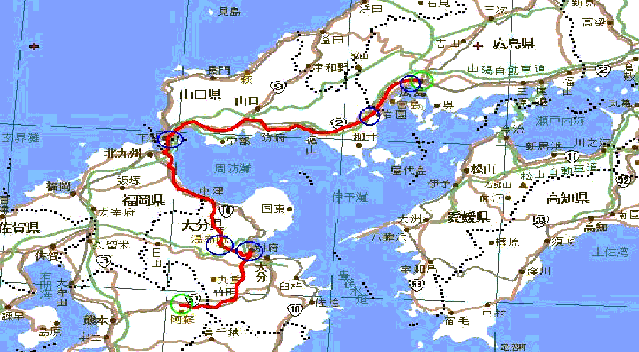 広島から別府通って阿蘇て、アホやなほんま。