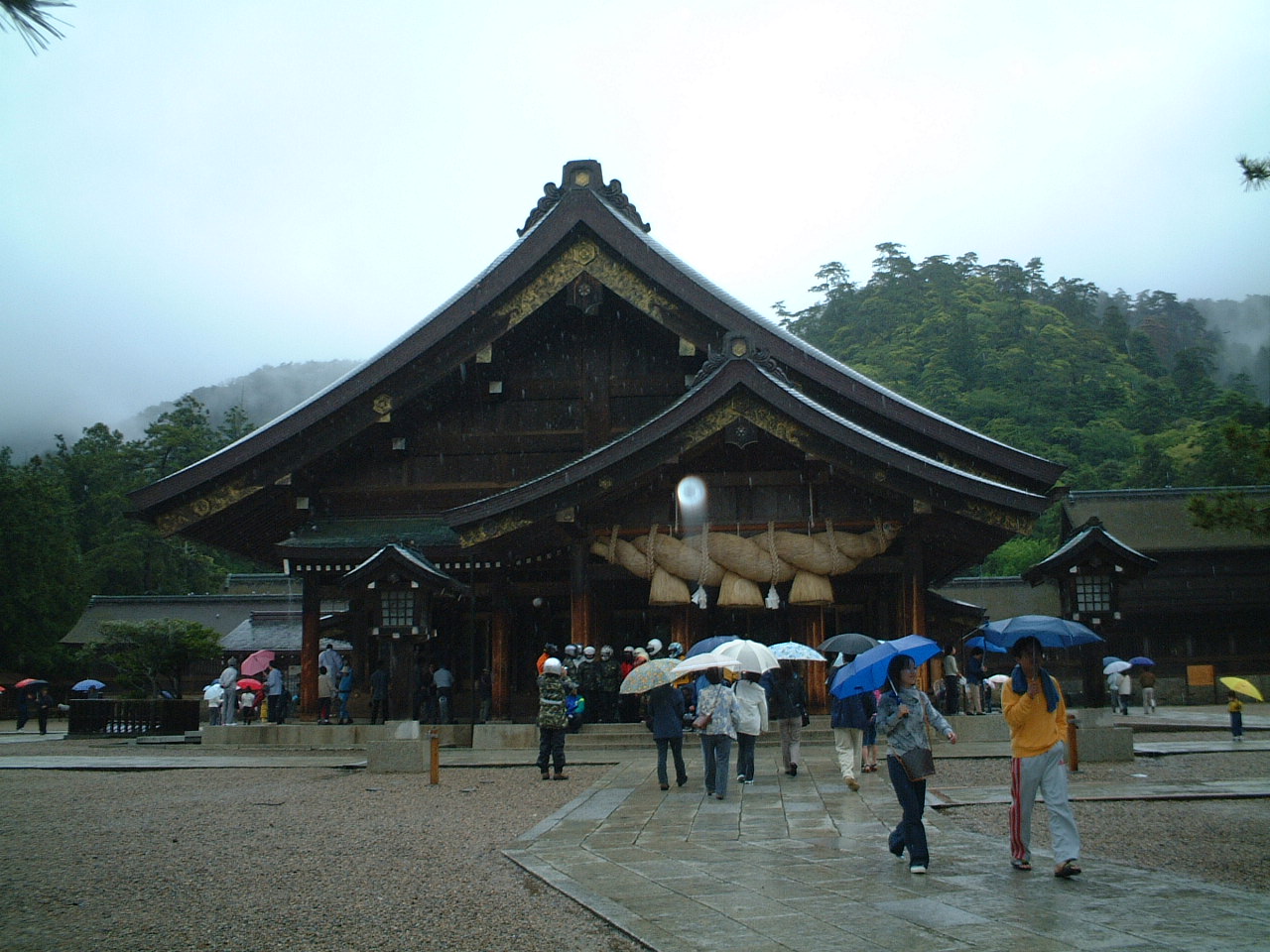 昨日のうちに島根県に入り、松江市まで来ていた。昨日の夜から凄い勢いで降ってきた雨は、まだあがってはいなかった。とりあえず身支度を整えると、出発することにした。 通りがかりに 松江城 があったんで、近くで車を止めてとりあえず記念撮影。左の写真の遠くの方に写っているのが松江城。ちなみに、手前にあるそれっぽい建物はただの売店・・・・。(笑) 雨がふつーに降ってて、中まで入るのがめんどくさかったんで、とっとと写真を撮って次へと向かった。そーいえば昨日、こんなとこを通った。日本の羽合(ハワイ)町。何でも、その名を生かしてアメリカのハワイ郡(ハワイ島)と姉妹都市の提携を結んじゃったんやとか。。。。そして、そんな羽合町にある多目的ホールの名前が、ハワイアロハホール・・・・。いやはや鳥取人、ここまでやるとアッパレやね。。。。 昨日は休日やって、人が誰もおらんかったから結局よく分からんとこやってんけど、そんなやっちゃってる名前に反して、海援隊がコンサートしてたり、三遊亭楽太郎が寄席をやってたり、微妙な感じの有名どころがちょくちょく来てるみたいなんが地味に凄かった。とにかく、ここから地域を活性化、布いては日本を活性化へと向けて頑張って欲しいね。(謎) ![]() 松江城を後にしてすぐ、目の前に拡がってきたのが宍道湖。シジミが名物ってことで有名やと思うねんけど、そのとおりそこかしこにシジミ汁の看板があった。俺らもかなりの勢いで食べたかってんけど、こんなGWの朝っぱらから開いてる奇特な店は1つもなく。。。。残念ながら、泣く泣くパスということに相成りました。それにしても、この日は天気が悪くて、右の写真のとおり、湖の雰囲気もかなり荒々しいことになっとって。普段はそんなことない、穏やかな湖なんやろけど、何かこうゆう荒々しい雰囲気もちょっとかっこ良かったりもした♪(笑) そして、その湖畔にあったのが、松江ウォータービレッジ。何でも、中にはルイス・C・ティファニー庭園美術館なんてのがあったりする複合型の美術館なんやとか。ルイス・C・ティファニーってゆう人は、かの有名なTiffany&Co. の創業者であるチャールズ・ルイス・ティファニーの長男として生まれ、アール・ヌーヴォーの頂点を極めた巨匠として、世界の芸術史にその名を残す芸術家やってことらしい。でも、Tiffany&Co.とは一切関係はなかったんやと。そんな人の作品がこんなとこにあるってのは凄いね。もしかして、美術・芸術の世界ではけっこう有名なとこなんやろかここって!?そっちの世界には全く疎いんで、俺は全然知らんかってんけど。。。。ちなみに、ここの最寄り駅になっている駅が、「ルイス・C・ティファニー庭園美術館前」駅ってゆう名前で、平仮名表記で数えると日本一長い駅名になるんやと。案外、こっちの理由で知ってる人の方が多かったりして!?(爆)どーやら、まだ開館前やったみたいで、中には入れませんでした。 次に向かったのが、本日の目的地の出雲大社 。「縁結びの神様」として有名らしいんで、参ればきっと俺にも良い縁がある!?(笑) そんな感じでみんな良縁を得たいが為か、あいにくの空模様やとゆーのに、けっこうな数の人が朝っぱらからお参りに来とった。さすが有名な神社てことで、社もめっちゃでっかくて荘厳な雰囲気が漂ってたよ。ところで、出雲とゆえば、出雲大社 ! ! じゃなくて、出雲そば。花より団子の俺たちには、出雲へ来た目的は何とゆっても、出雲そば。丁度お昼時に近づいたってこともあり、出雲大社の脇にそば屋を見つけると、良さ気な店を1軒ピックアップしていざ突入。さすがに、有名な出雲そば。そんじょそこらで食べるそばとは一味も二味も違ったわ。コシとかのど越しが全然違う。そばにはうるさいらしいSも、これはうまいって大絶賛やった。やっぱ本場のそばは違うね〜。うまいそばでお腹を満たした二人は、ちょっとさっぱりするかってことで、この日も温泉に行くことに。行き先は、温泉津(ゆのつ)温泉。そのおもろい名前にも惹かれた俺らは、迷わずここに行くことに決めた。でも、行ってみたら何となくさびれてる、、、、GWやのに・・・・。まぁ確かに、けっこう田舎な山の中にあるもんな〜。で、源泉の1つ「薬師湯」に行く。浴槽は湯の花が体積して金色に輝いてて、か〜なりレトロな雰囲気がぷんぷんと。ちょっとさびれてる気はしたものの、さっぱりできたし、そこそこ悪くはなかったかなと。 温泉に入りさっぱりすると15時過ぎ、そろそろお腹が減ってきた。昼前にそばは食べたけど、そばくらいじゃすぐお腹減るしね〜。しばらく日本海沿いを走っていると、しまねお魚センター なるもんを発見。今までの旅を振り返ってみると、漁港では絶対においしいもんが食べれるに違いない!そう考えた俺らは、当然立ち寄ってみることにした。が、GWやからか、すでに閉まってた・・・・。あーあ、漁港に裏切られたん初めてかも。。。。まぁ、そ