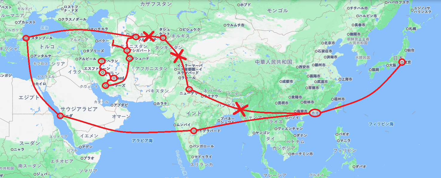 ところが、、、香港でまさかの飛行機の乗り継ぎに失敗!! まーぢで、スタートすらできずにトルクメ行き断念かと思ったで。。。